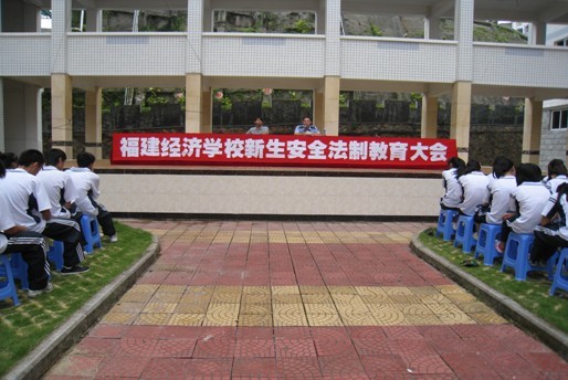 2011年8月27日上午,我校在新建的大会场召开全体新生参加的安全法制教育大会。我校聘请的校外法制辅导员、洪山派出所胡丛荣警官在会上对全体新生进行了法律法规、预防校园暴力和校园防盗技巧等知识讲座。保卫科长徐立同志向新生传授了安全疏散常识,希望同学们认真学习学校《安全手册》,掌握各项安全知识,时刻注意安全。接着,全体新生在各班班主任的带领下参加了安全疏散演练。演练组织有序,取得了良好的效果。